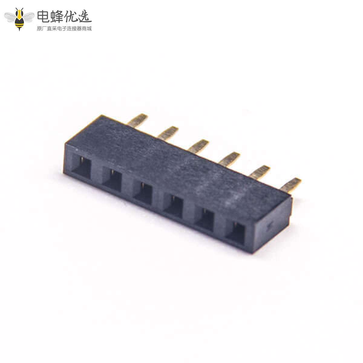 - 排母连接器,母头,直式,180度,6Pin,2.54mm,单排,插板,焊接,镀金,黑色,H5.0mm,方形;