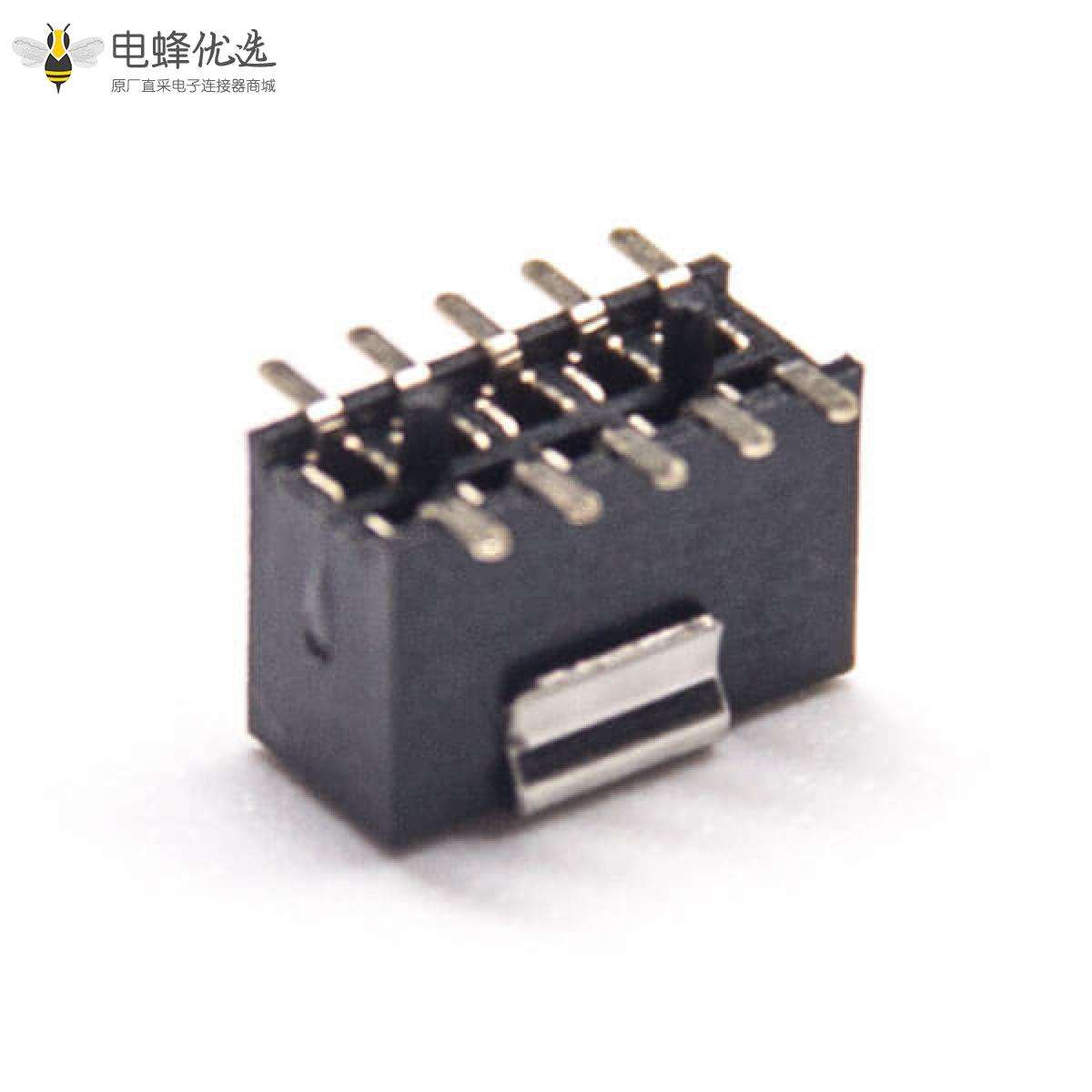 - 排母连接器,母头,直式,180度,10Pin,1.27mm,双排,贴片,焊接,镀金,黑色,H4.3mm,方形;