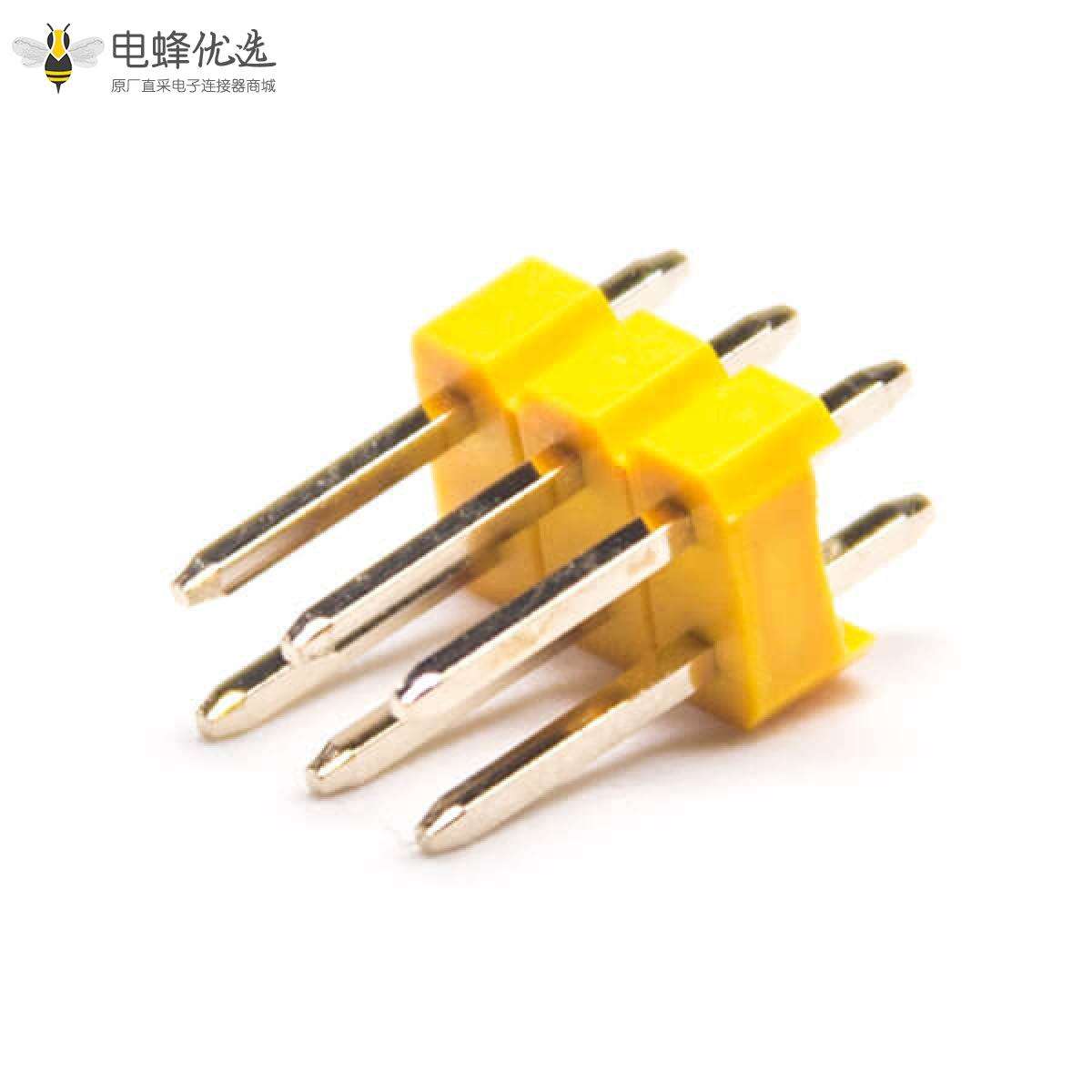 - 排针连接器,公头,直式,180度,6Pin,2.54mm,双排,焊接,穿孔,镀金,黄色,H2.5mm,方形;