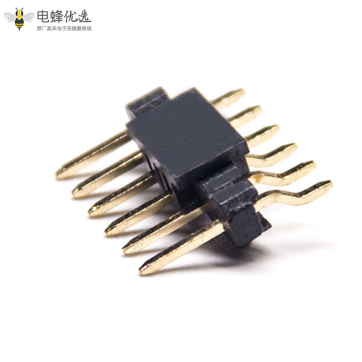- 排针连接器,公头,直式,180度,6Pin,2.54mm,单排,焊接,贴板,镀金,黑色,H2.5mm,方形;