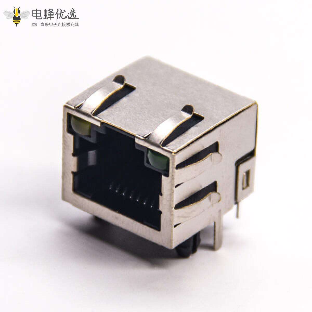 带灯rj45封装8p8c弯式母座穿孔式接PCB板带弹片
