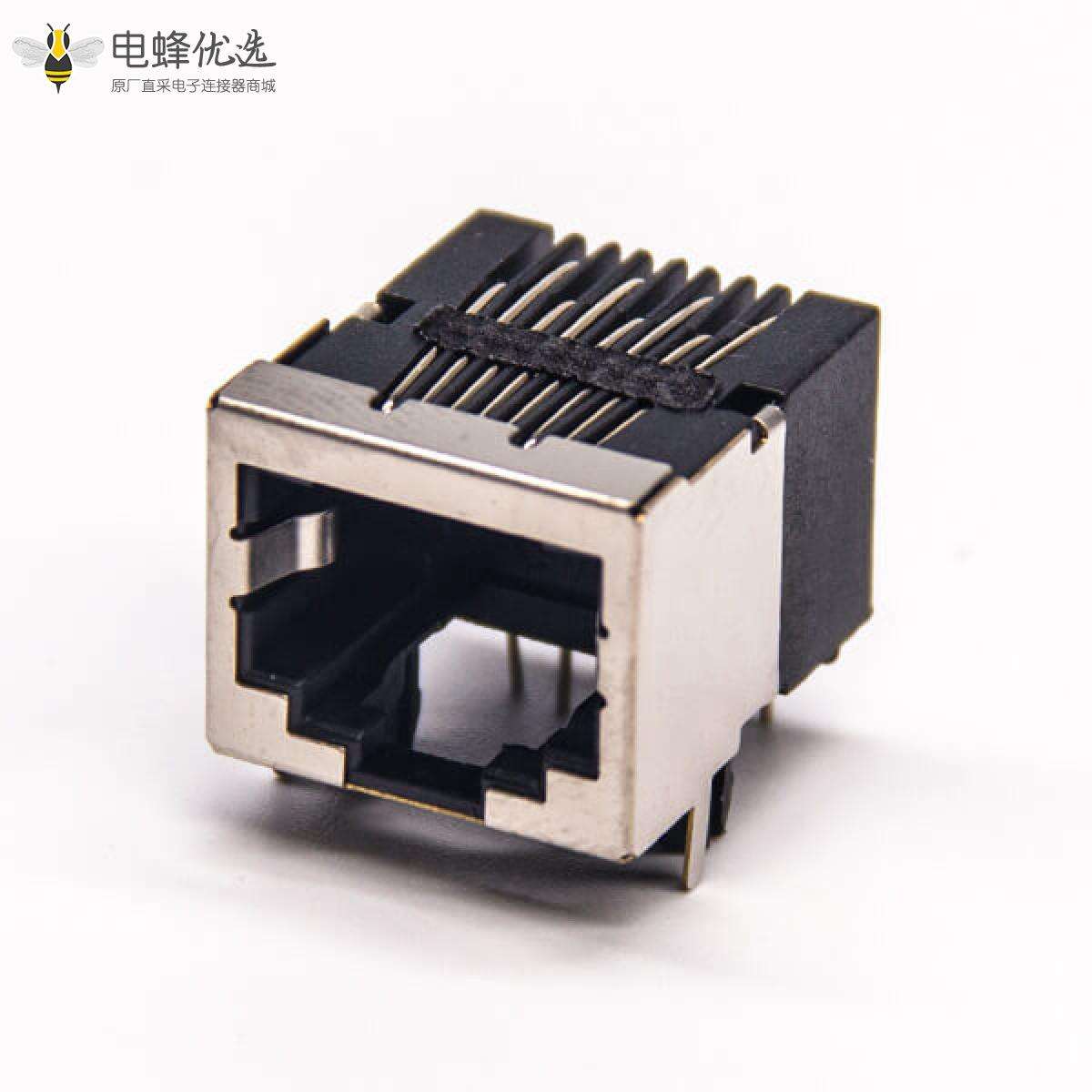 rj45网口端口8p8c弯式半包带屏蔽穿孔式接PCB板