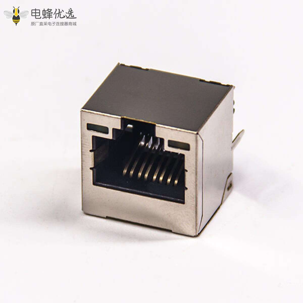 rj45网络直通头单端口直式带屏蔽插座带LED灯接PCB板