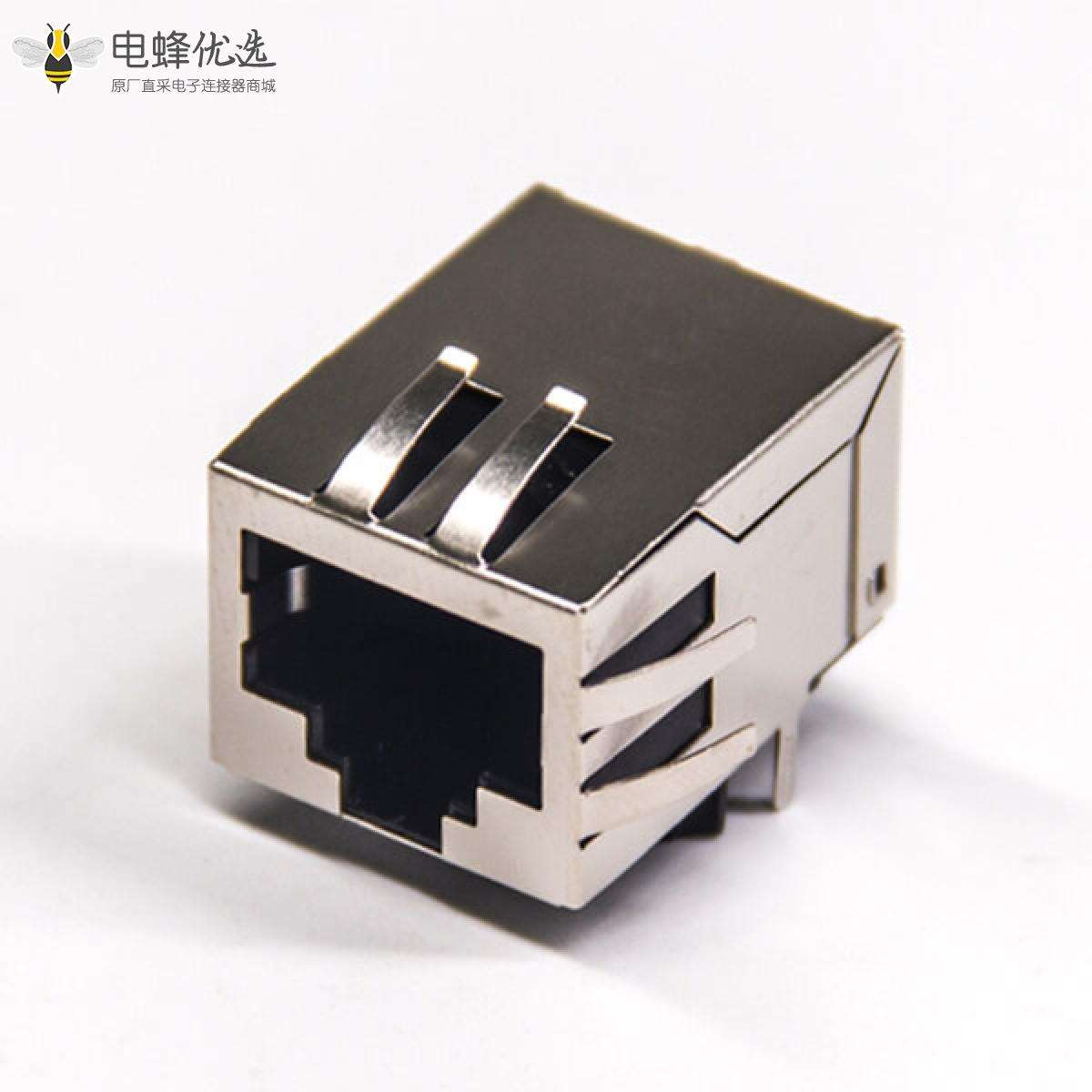 RJ45插座,8P8C,单端口,1*1,弯式90°,触头镀金,插板,PCB板安装,带屏蔽,不带灯,不带滤波;