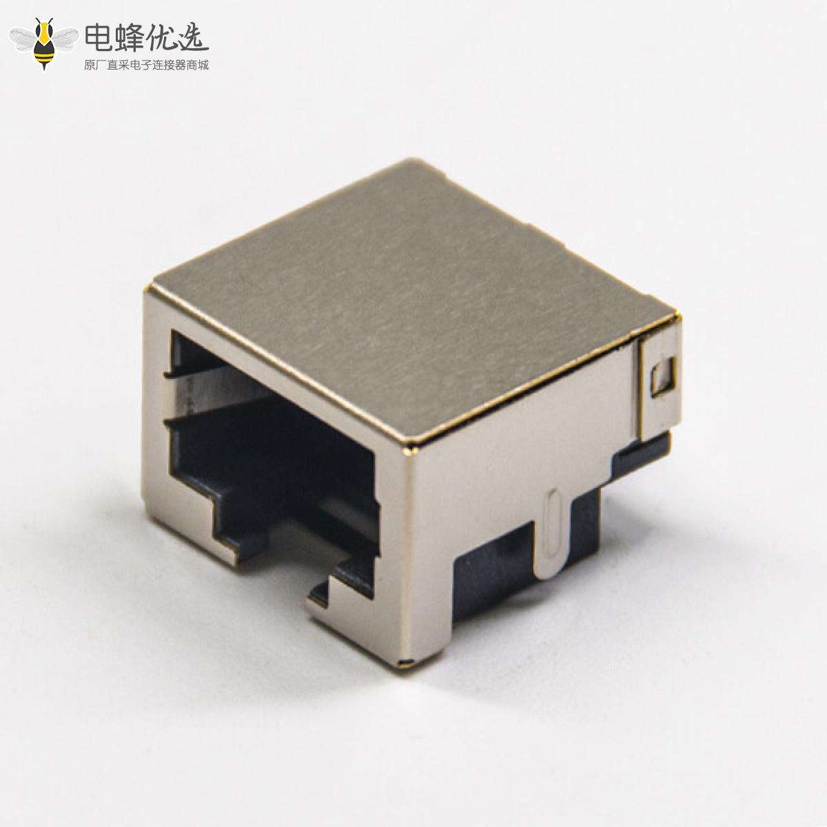 RJ45插座,8P8C,单端口,1*1,弯式90°,触头镀金,沉板,插板,带屏蔽,不带灯,不带滤波;