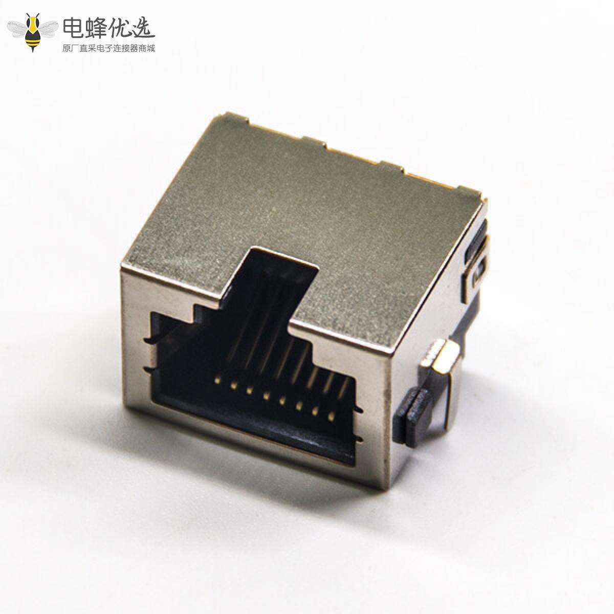 RJ45插座,8P8C,单端口,1*1,弯式90°,触头镀金,沉板,插板,带屏蔽,不带灯,不带滤波;