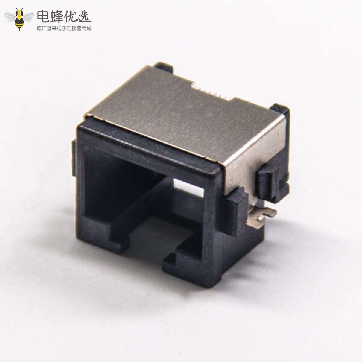 RJ45插座,8P8C,单端口,1*1,弯式90°,触头镀金,沉板,插板,带屏蔽,不带灯,不带滤波;