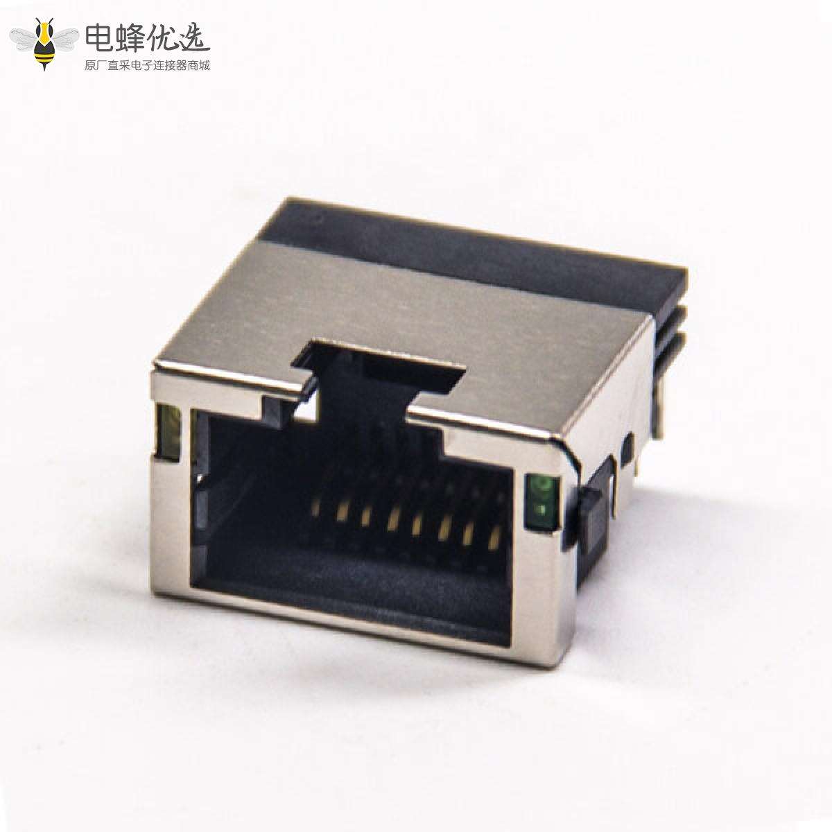 RJ45模块带灯左黄右绿插PCB板带屏蔽式网络连接器
