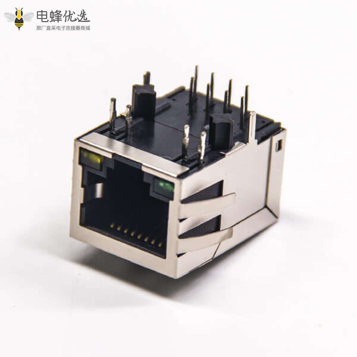 工业RJ45连接器8p8c弯式带led灯带弹片屏蔽式插座