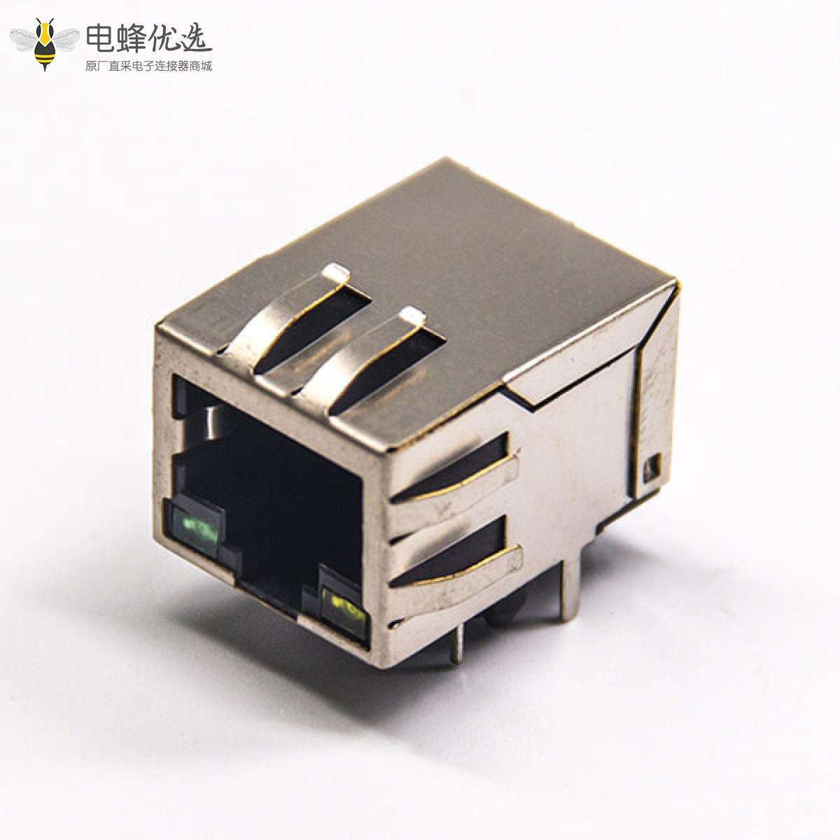 带弹片RJ45带屏蔽8p8c弯式带led灯接pcb板rj45网络接口