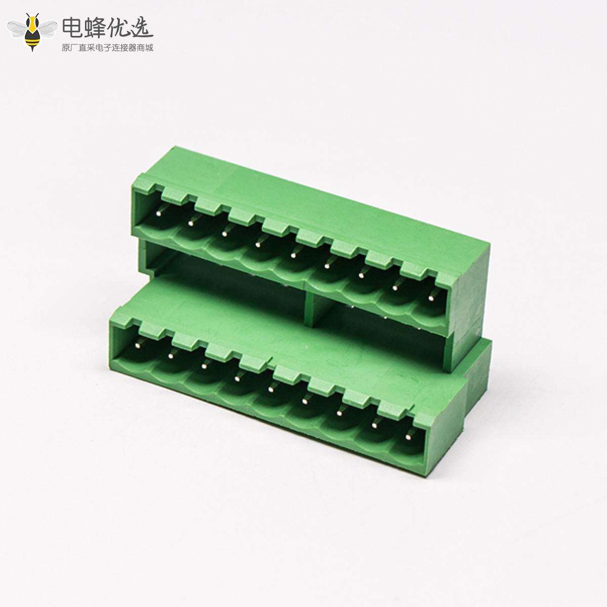 插拔式端子,绿色,直式,18芯,300V,10A,3.50mm/3.81mm,插孔,压接/压装;