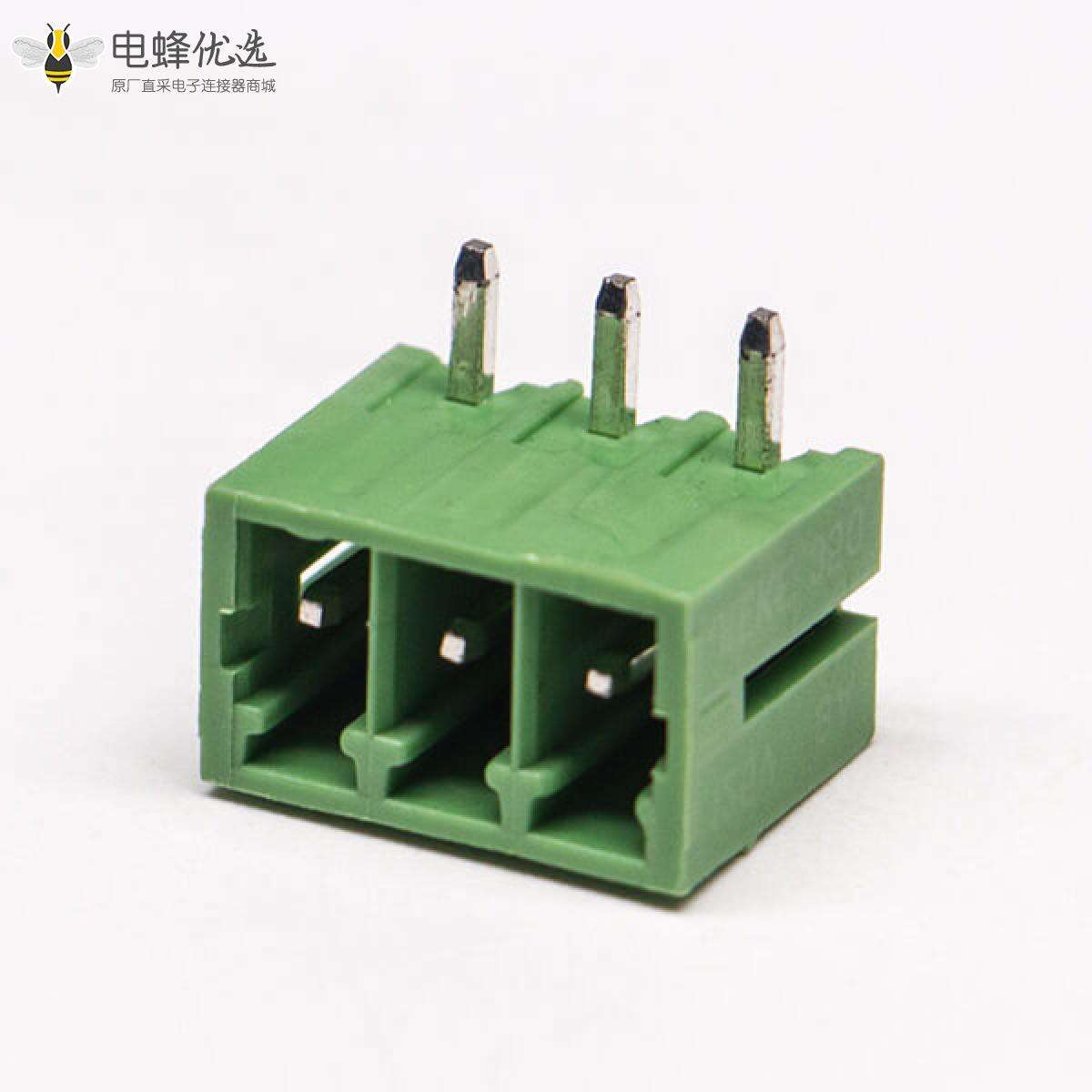 插拔式端子,绿色,弯式,3芯,300V,10A,3.50/3.81mm,插孔,焊接;