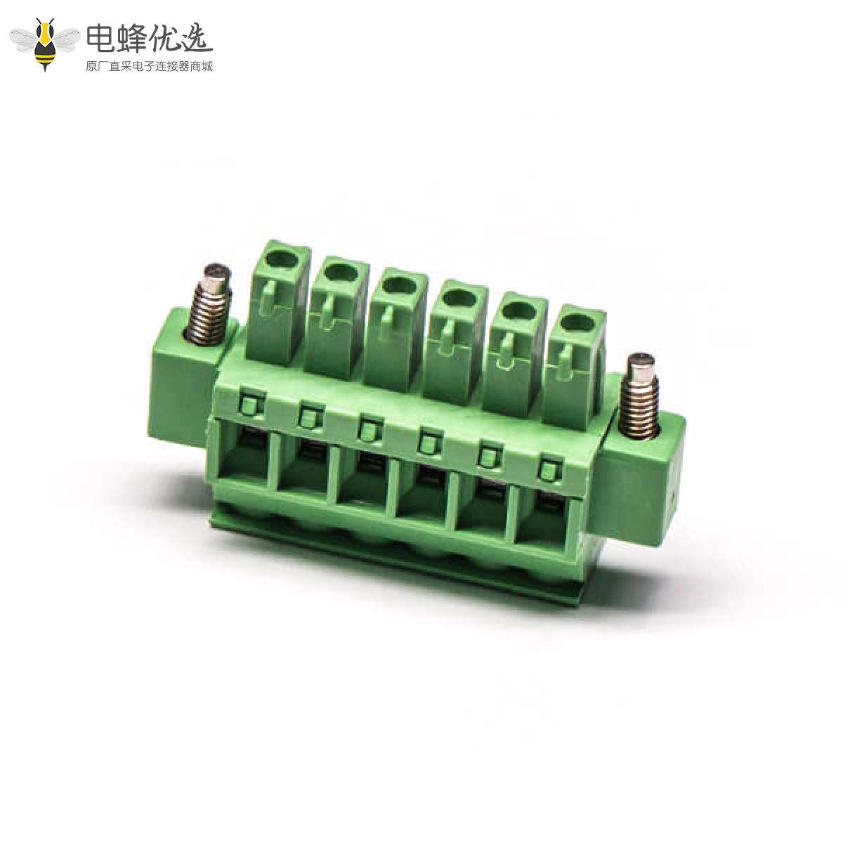 插拔式端子,绿色,直式,6芯,300V,10A,3.50/3.81mm,插孔,螺钉夹紧;