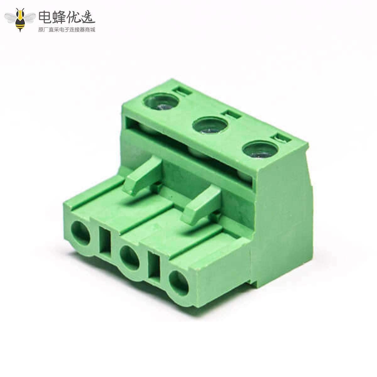 插拔式端子,绿色,弯式,3芯,300V,20A,7.50/7.62mm,插孔,螺钉夹紧;