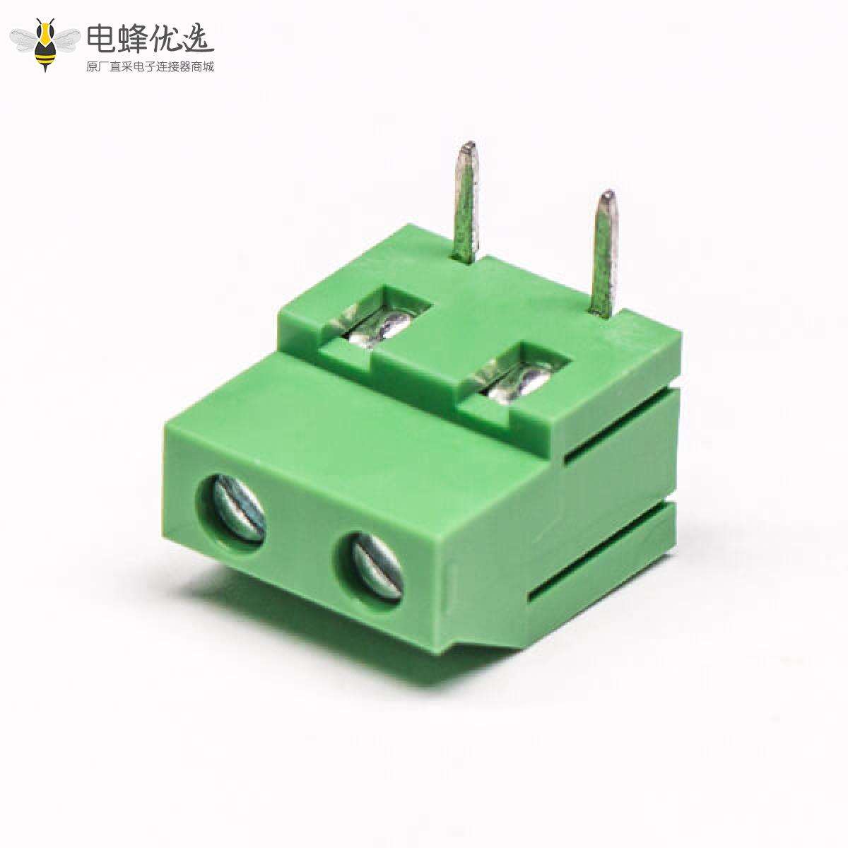 两芯绿色端子螺钉式弯式穿孔式接PCB板