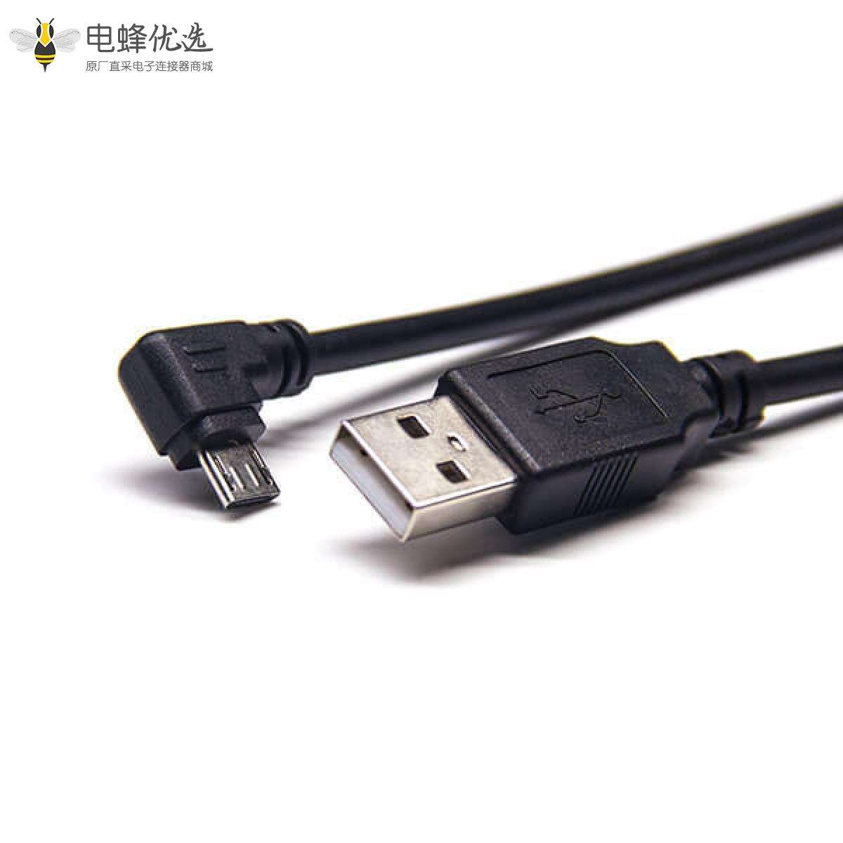 USB 2.0线材,Type A,公头,直式,Mirco-B,公头,左弯;
