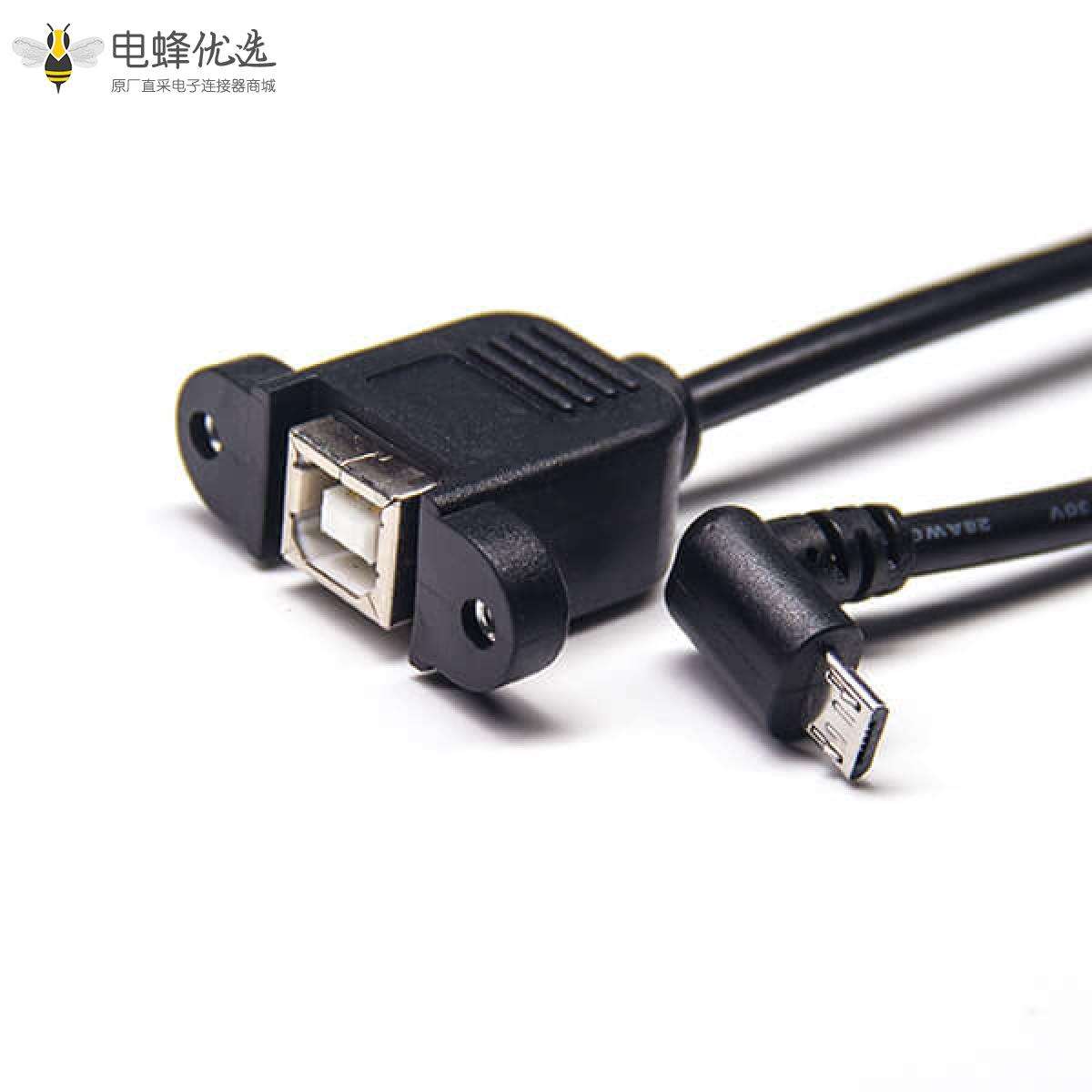 USB2.0线材,Micro USB,公,上弯,USB B,母,直;
