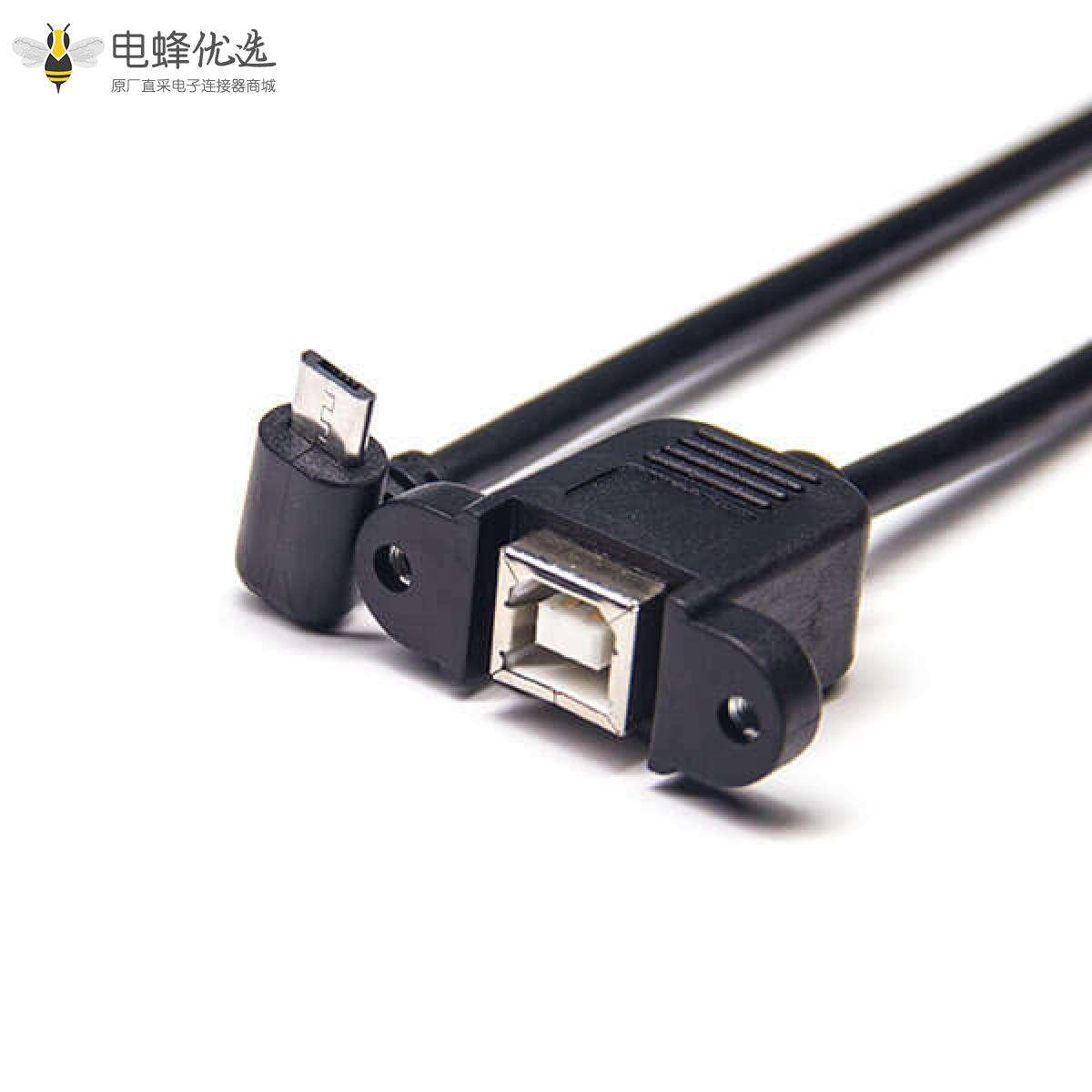 USB2.0线材,Micro USB,公,下弯,USB B,母,直;