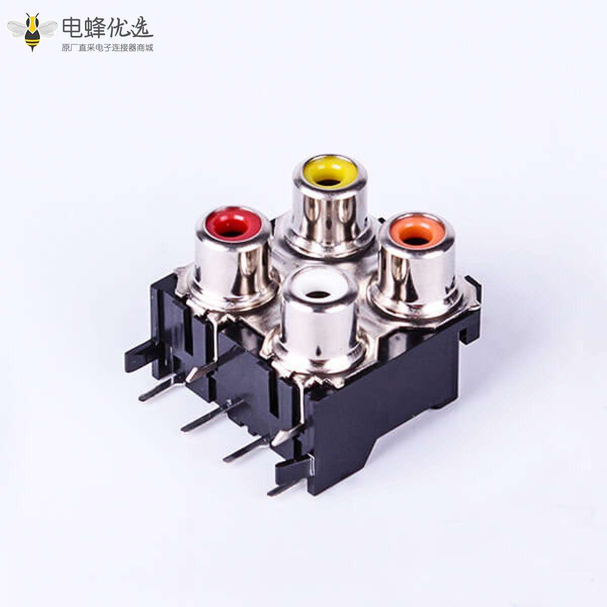 AV4孔音频插座RCA音频母座莲花插座