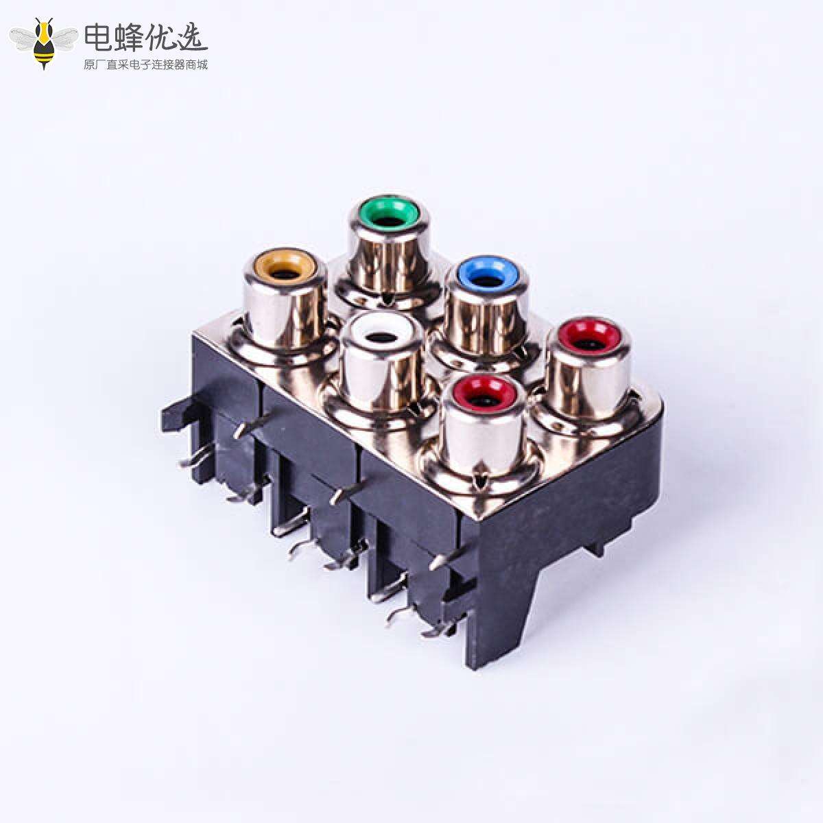 RCA接口AV母座6孔连体金属屏蔽音频端子AV莲花座