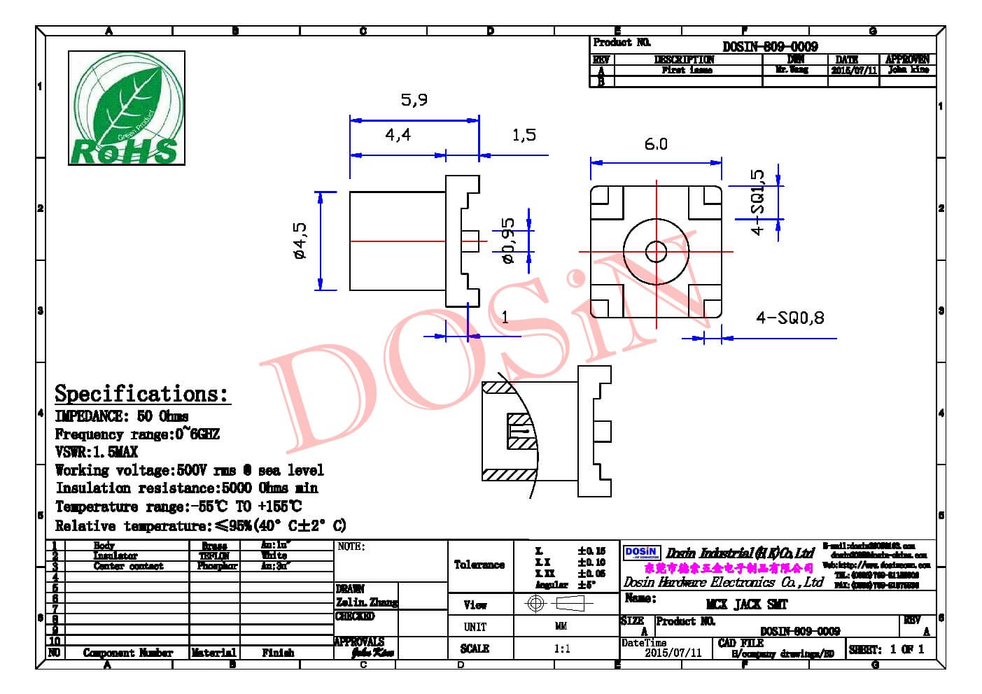 - mcx连接器,pcb板,母头,50欧,表贴;