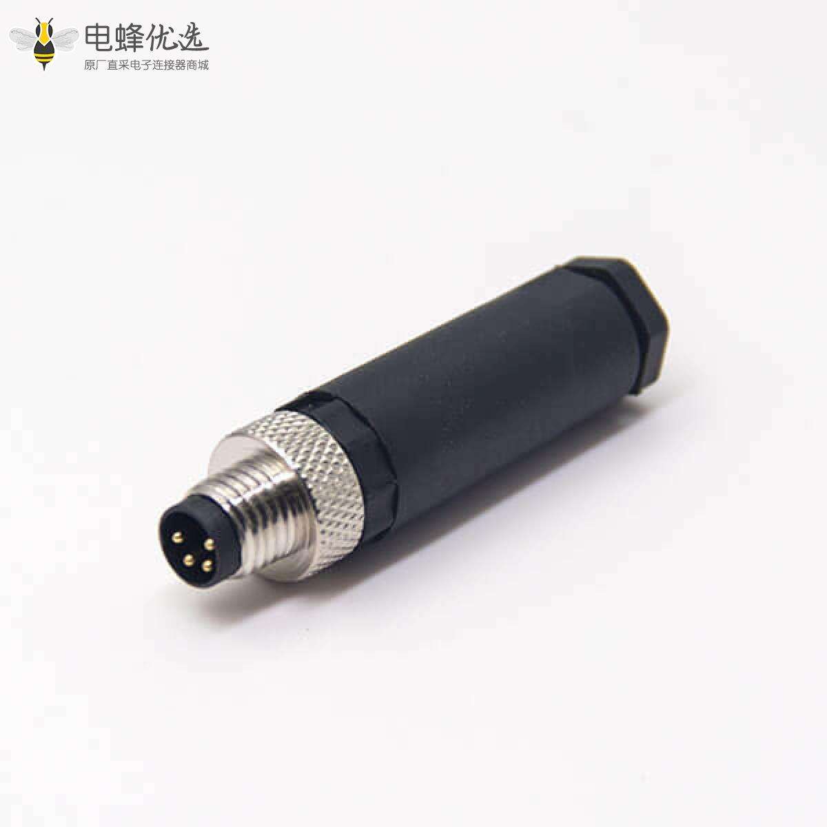 - M8,4芯,组装接头,公头,直头,接线,螺丝锁线,不带屏蔽;