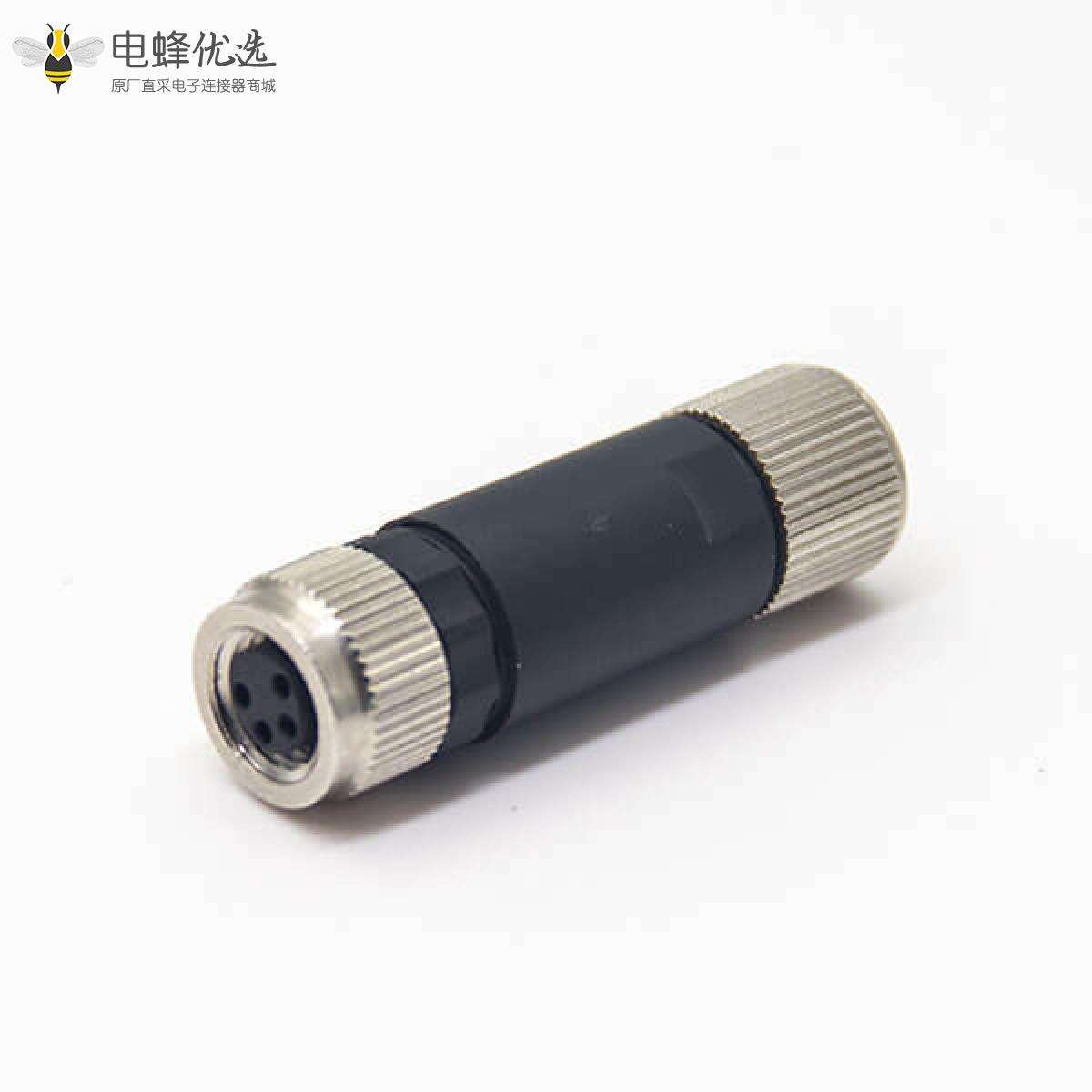 标准m8航空头4芯直式母头组装式锁接带屏蔽