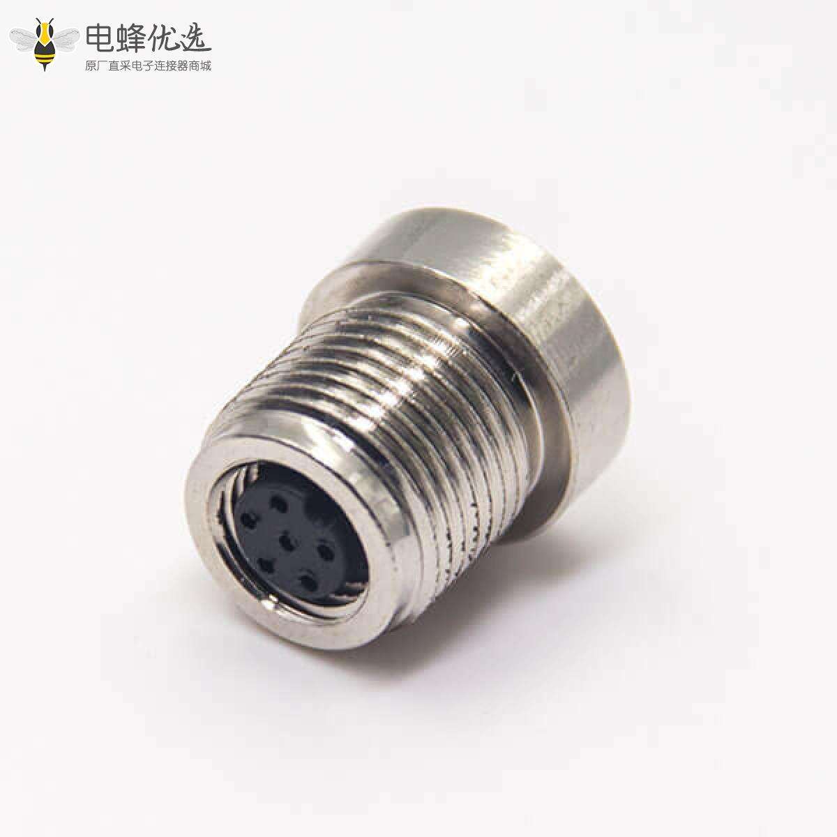 - M8,A编码,4芯,板端插座,母头,直式,前锁板,面板安装,焊线;