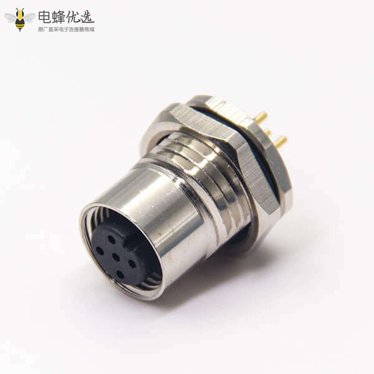 M12板端插座,A编码,5芯,直式,母头,插板,前锁板,面板安装;