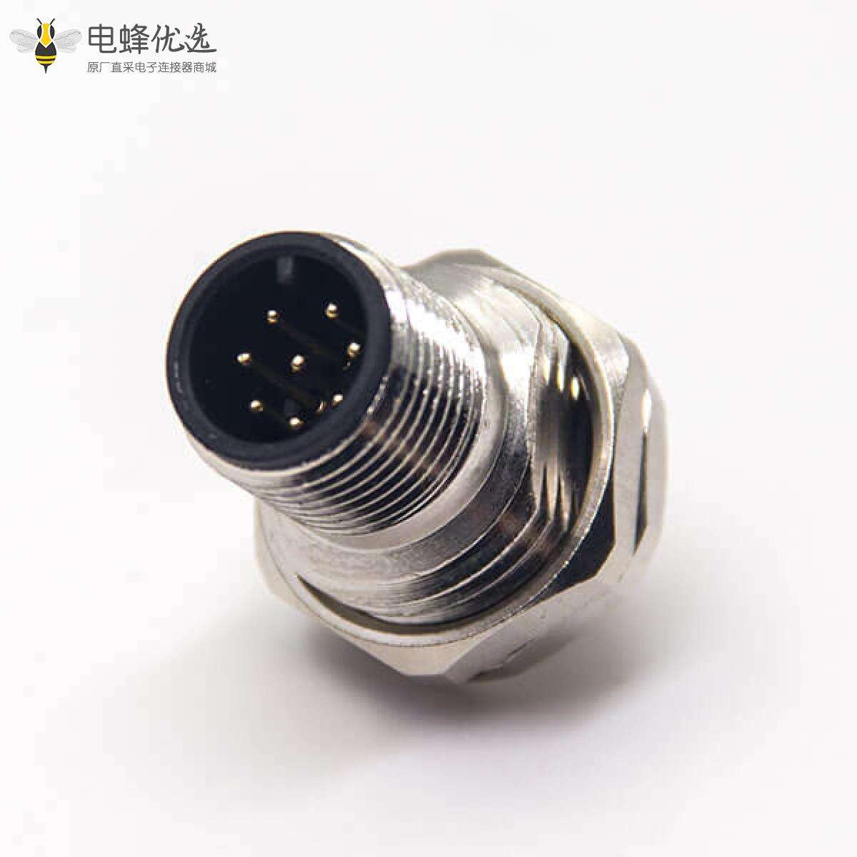 - M12板端插座,A编码,8芯,直式,公头,插板,前锁板,面板安装;