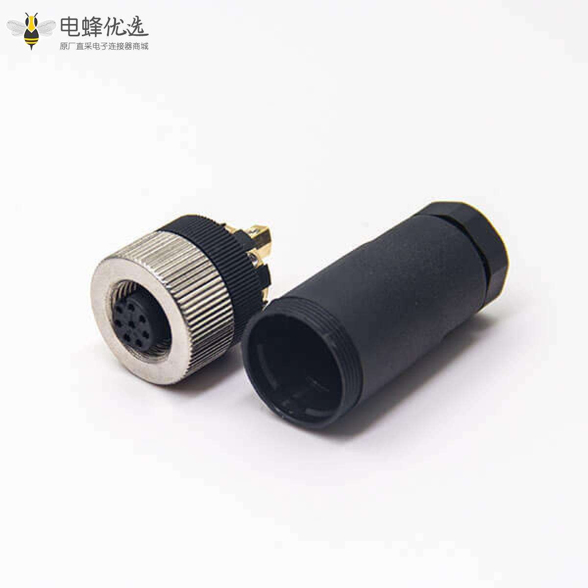 M12,组装接头,D编码,8芯,直式,母头,接线,螺丝锁线,不带屏蔽;