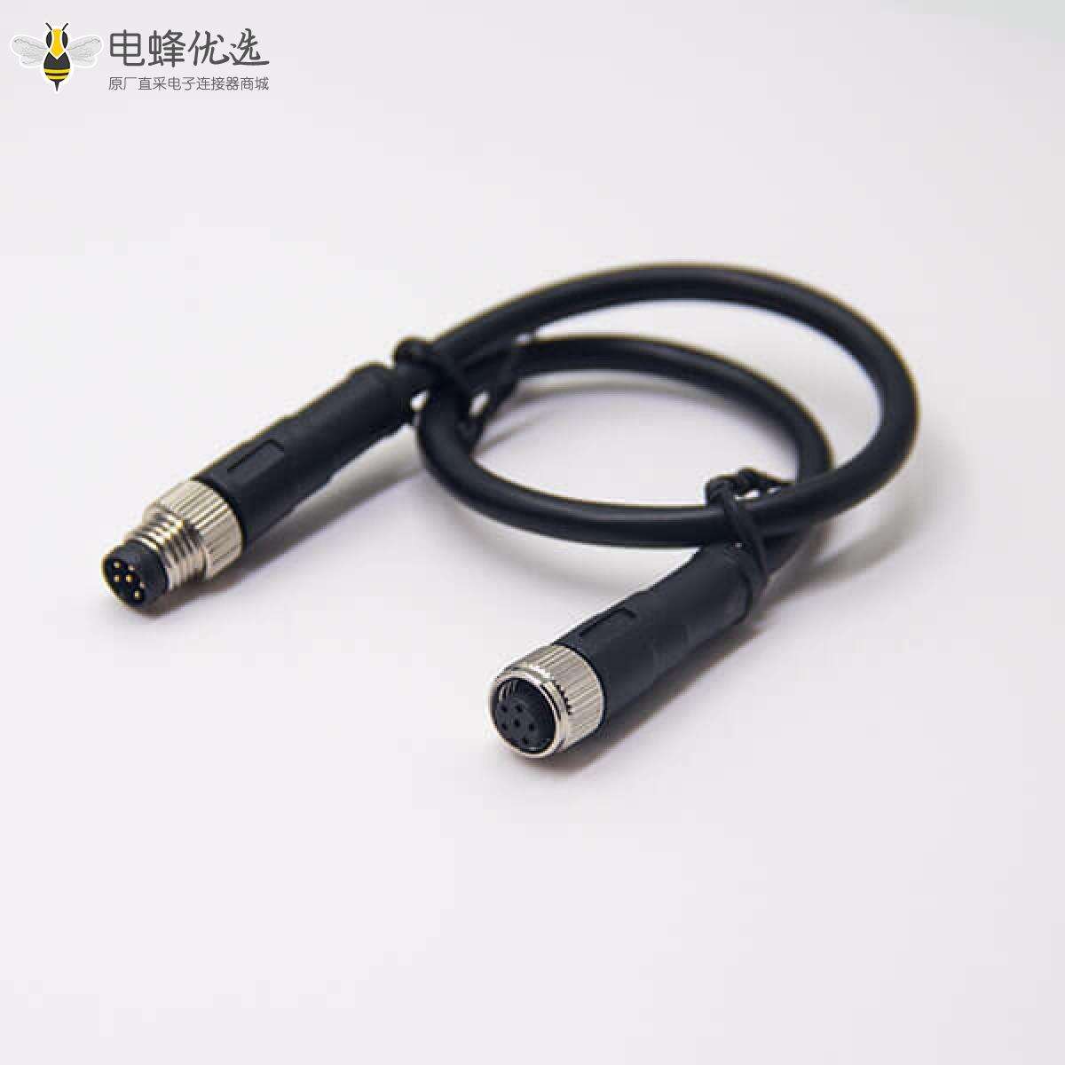 M8,6芯,A编码,线束,公转母, 双边线,直式,焊线,不带屏蔽 ;