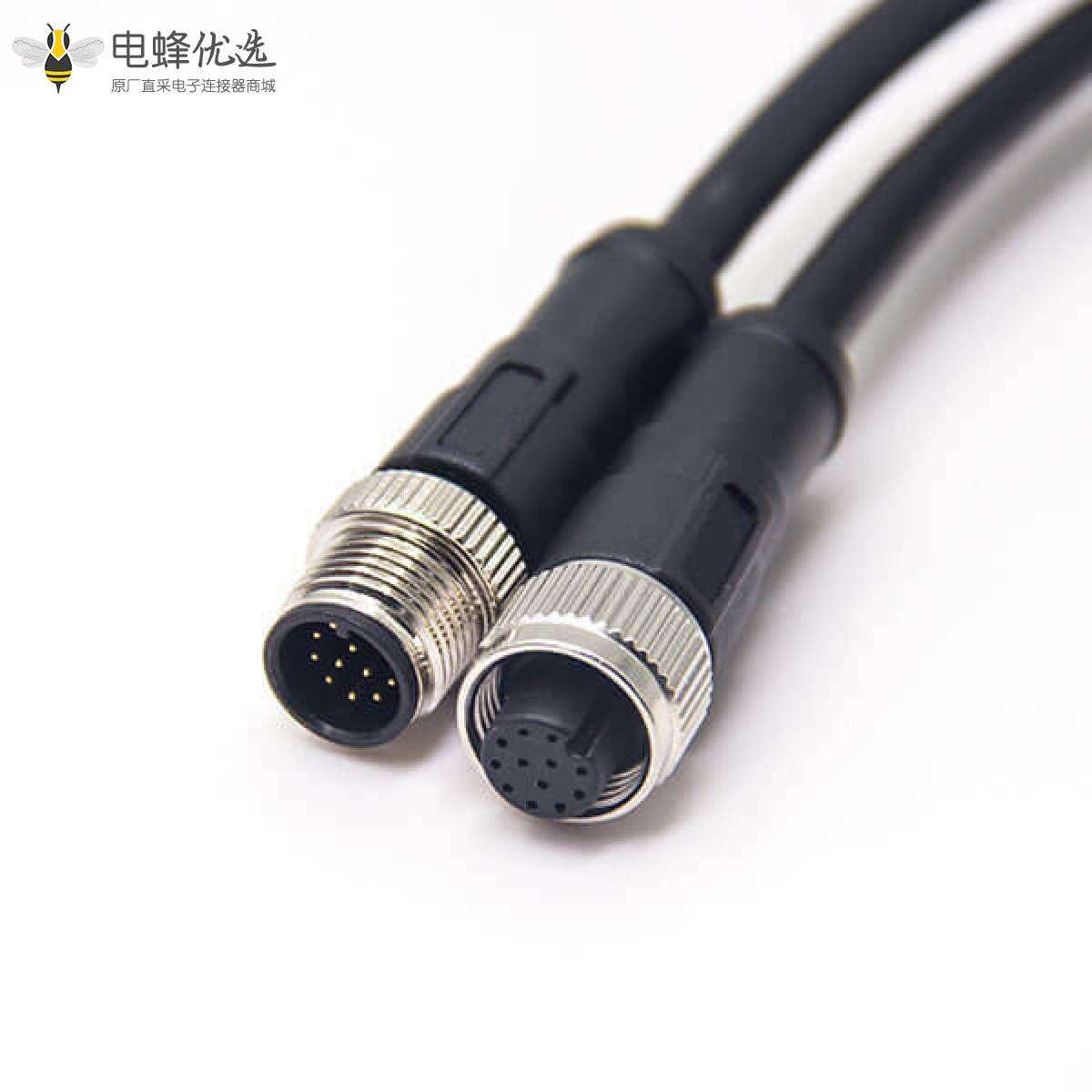 M12,A 编码,线束,12芯,公转母,直式,焊线,双边,不带屏蔽;
