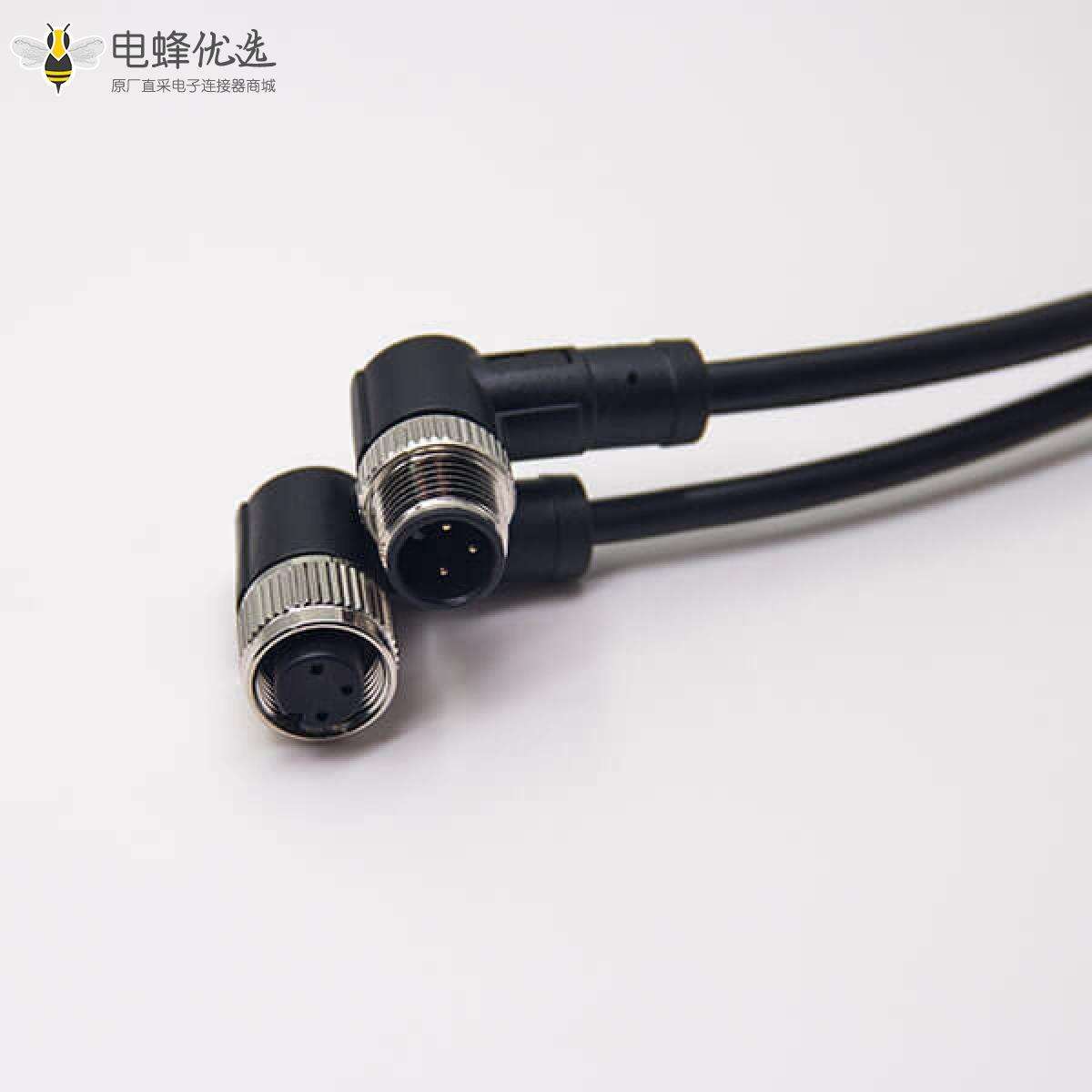 M12,A 编码,线束,3芯,公转母,弯式,焊线,双边,不带屏蔽;