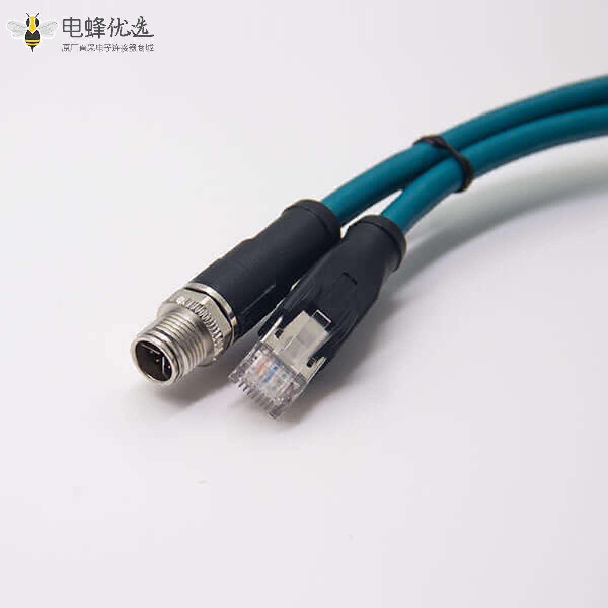 M12,X 编码,线束,8芯,公转公,直式,焊线,双边,不带屏蔽;