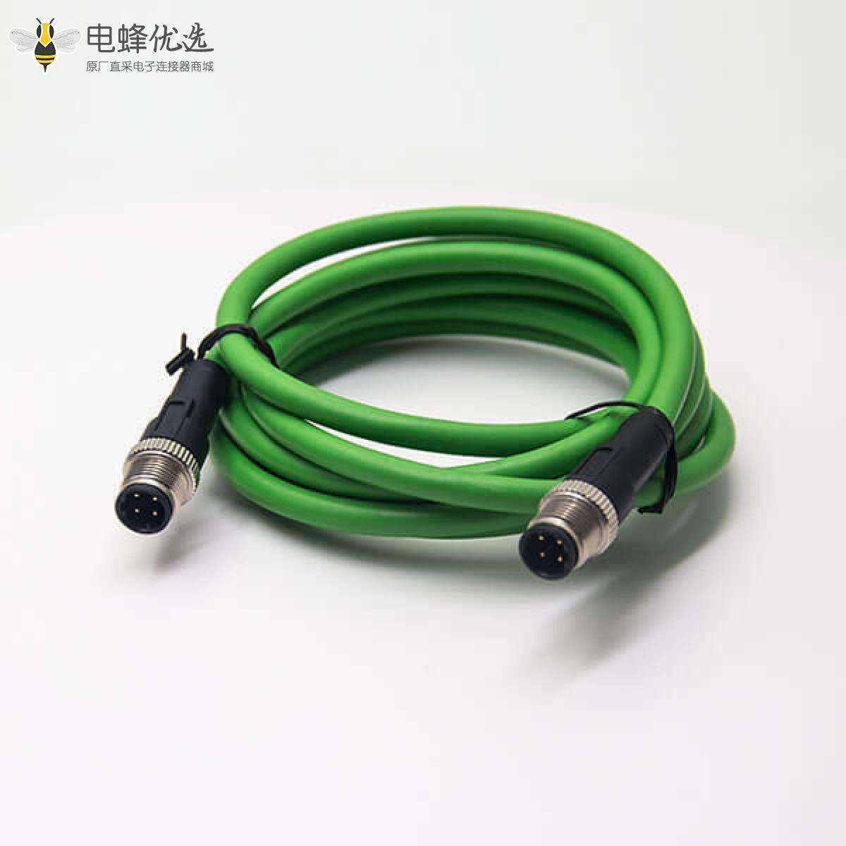 M12,4芯,D编码,线束,公转公, 双边线,直式,焊线,不带屏蔽 ;