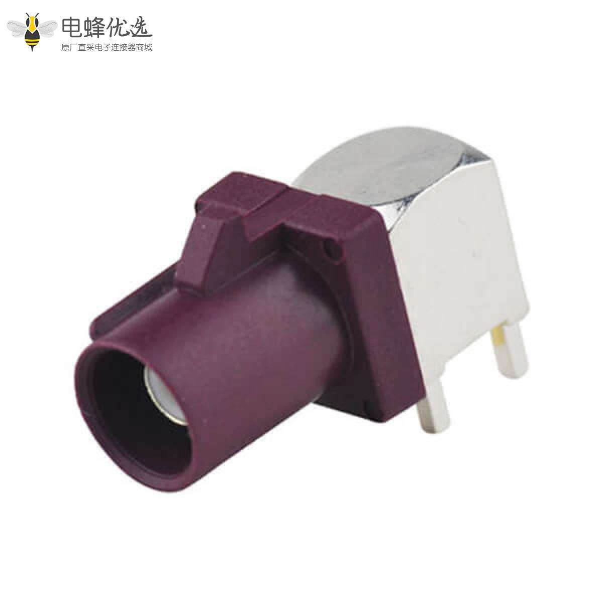 - RF连接器,Fakra连接器,公,弯式,50欧姆,PCB板安装,插孔,黄铜,镀镍;