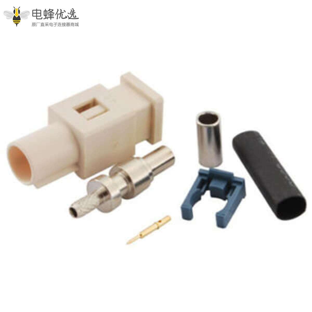 - RF连接器,Fakra连接器,公头,直式,50欧姆,接线安装,压接,镀镍;