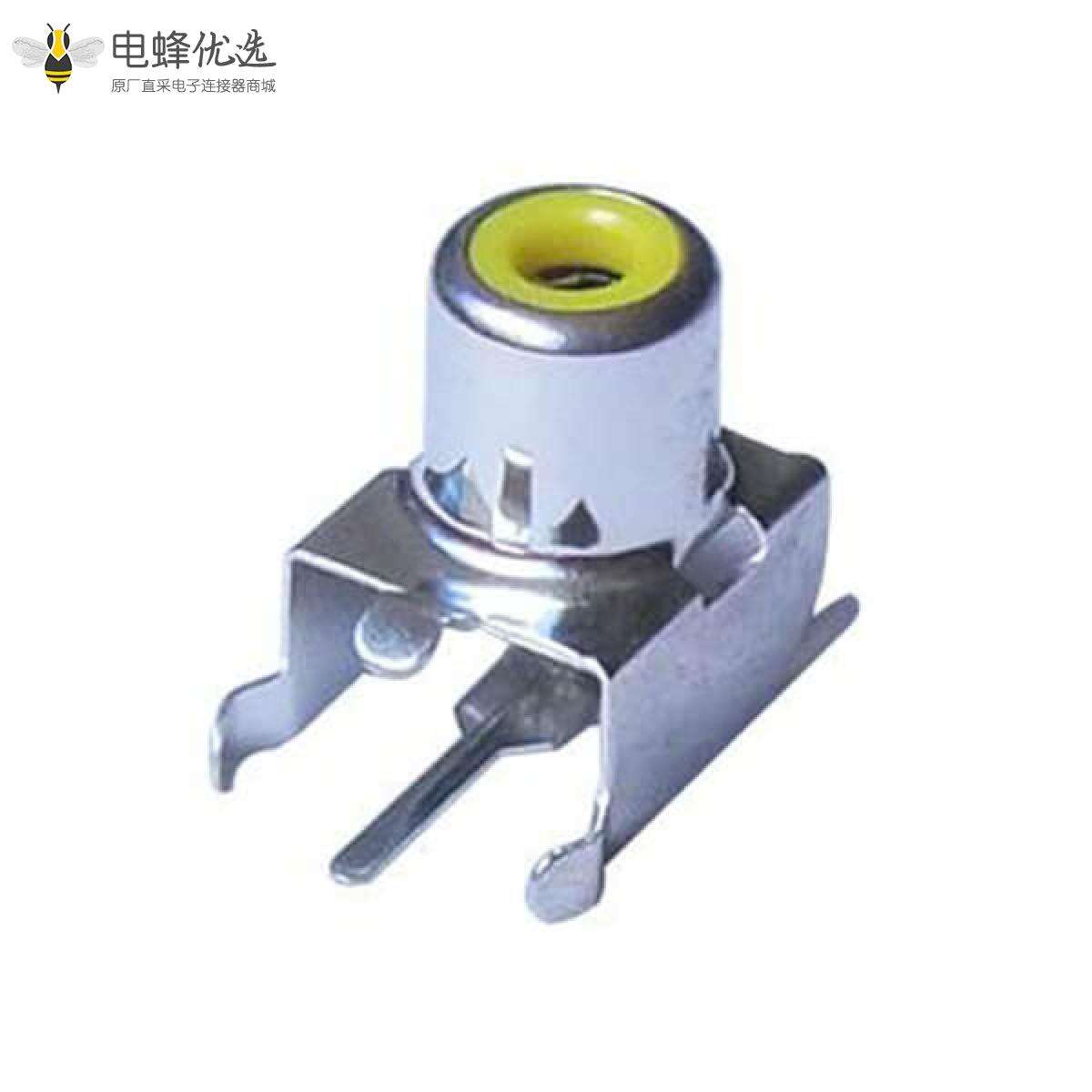 RCA连接器,母,插座,90°弯式,1孔,接板,插板,带支架,ABS.PBT,镀镍;