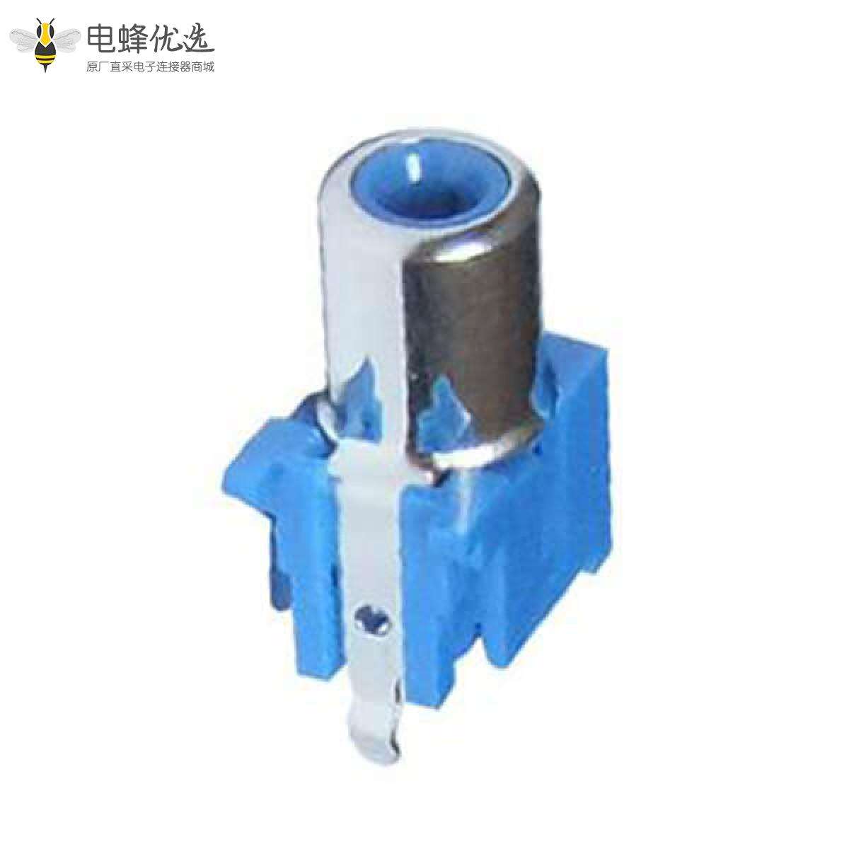RCA连接器,母,插座,180°直式,单孔,接板,插板,蓝色塑胶,ABS.PBT,镀镍;