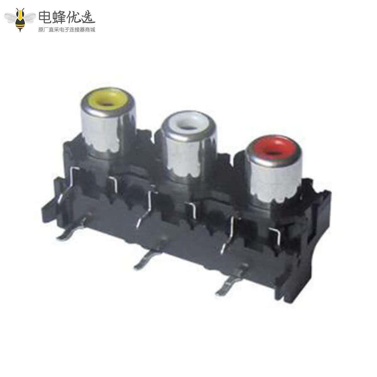 单排3孔RCA90度同轴连接器焊板 3PIN音频AV接口