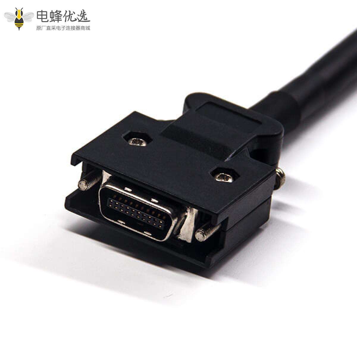 SCSI直插连接器线材20芯HPCN型黑色塑胶壳公转公螺丝锁接双边线1米