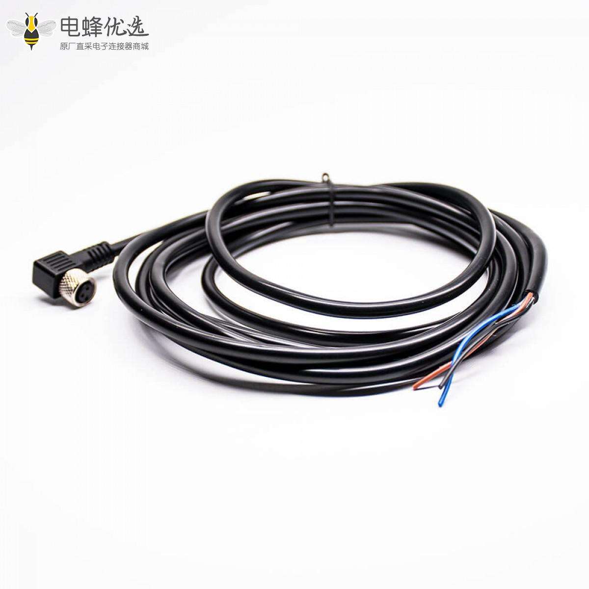 M8线材,单边线,3芯,母头,弯式,焊接,不带屏蔽 ;