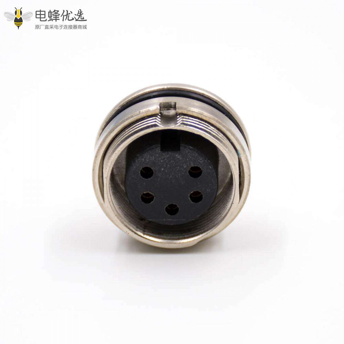 M16板端插座,母插座,5芯,A扣,直式,前锁穿墙,焊杯,接线;