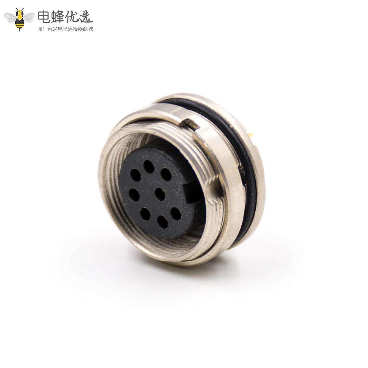 M16,母插座,8芯,A扣,直式,前锁穿墙,焊杯,接线,板端插座;