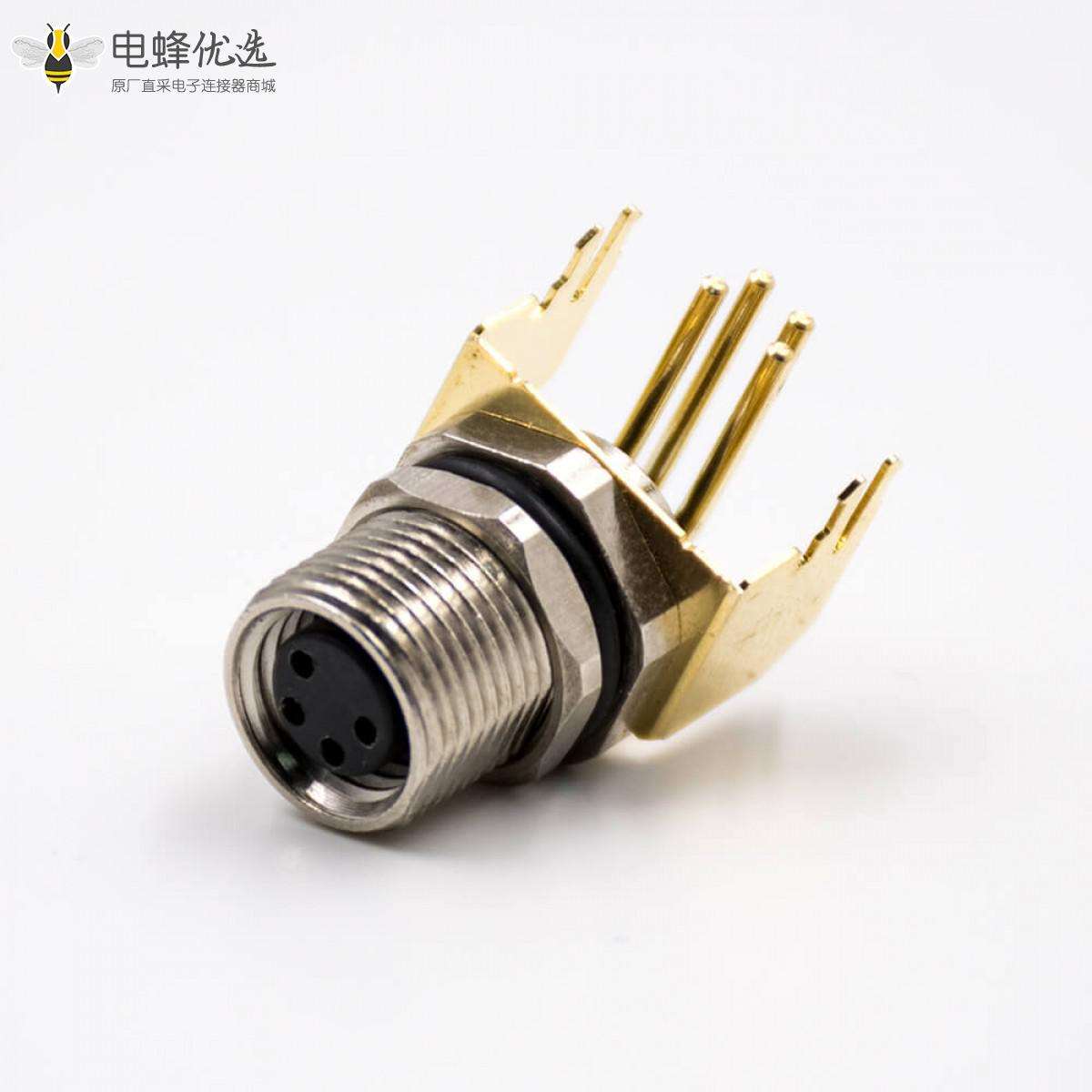 - M8,4芯,板端插座,母头,弯式,接PCB板,前锁板 ;