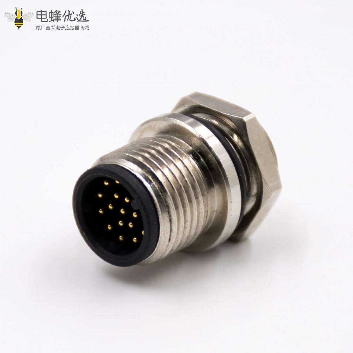 - M12,17芯,A扣,公头,直式,后锁板,板端插座,接线,焊接式;