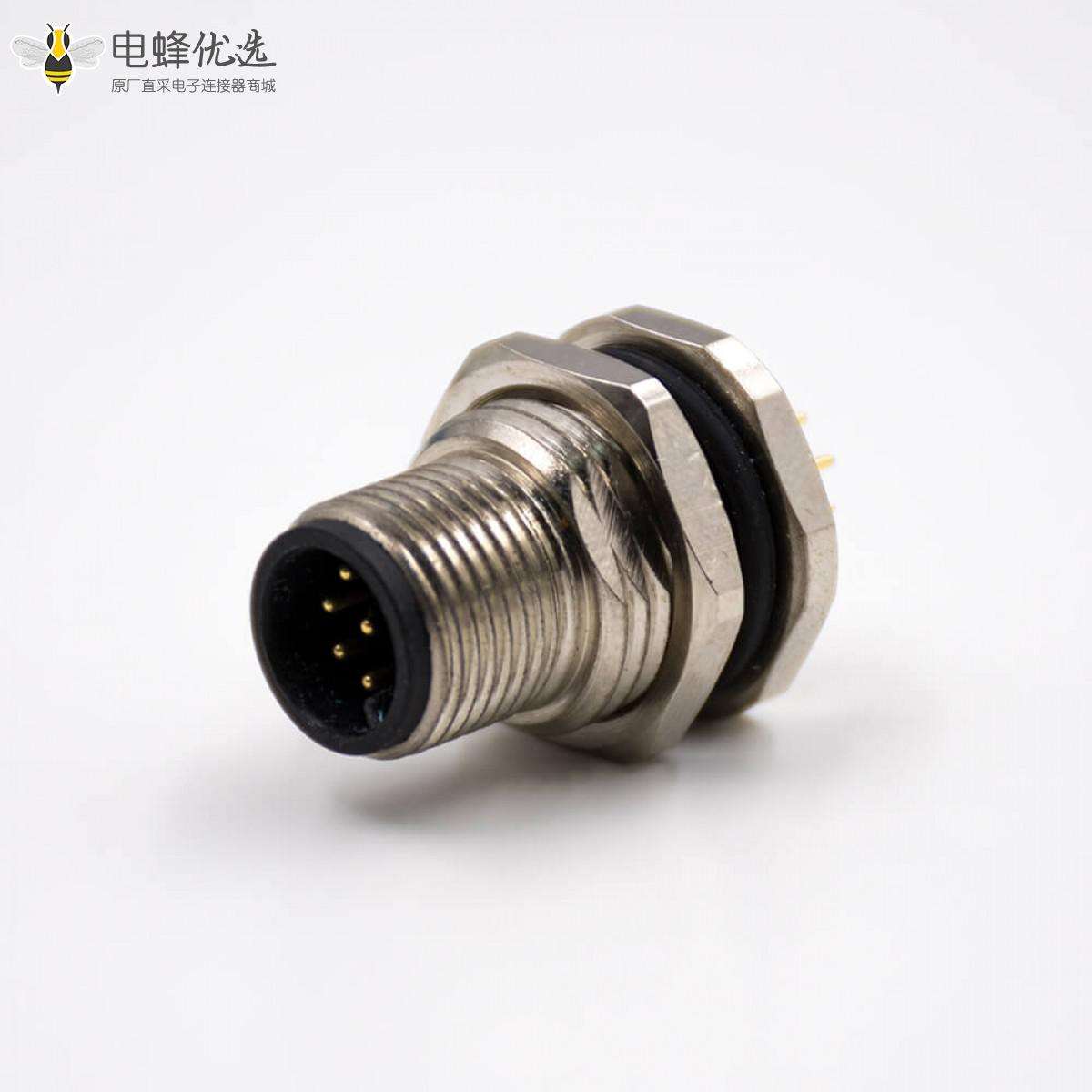 M12板端插座,A扣,直式,8芯,公头,前锁板,接PCB板;