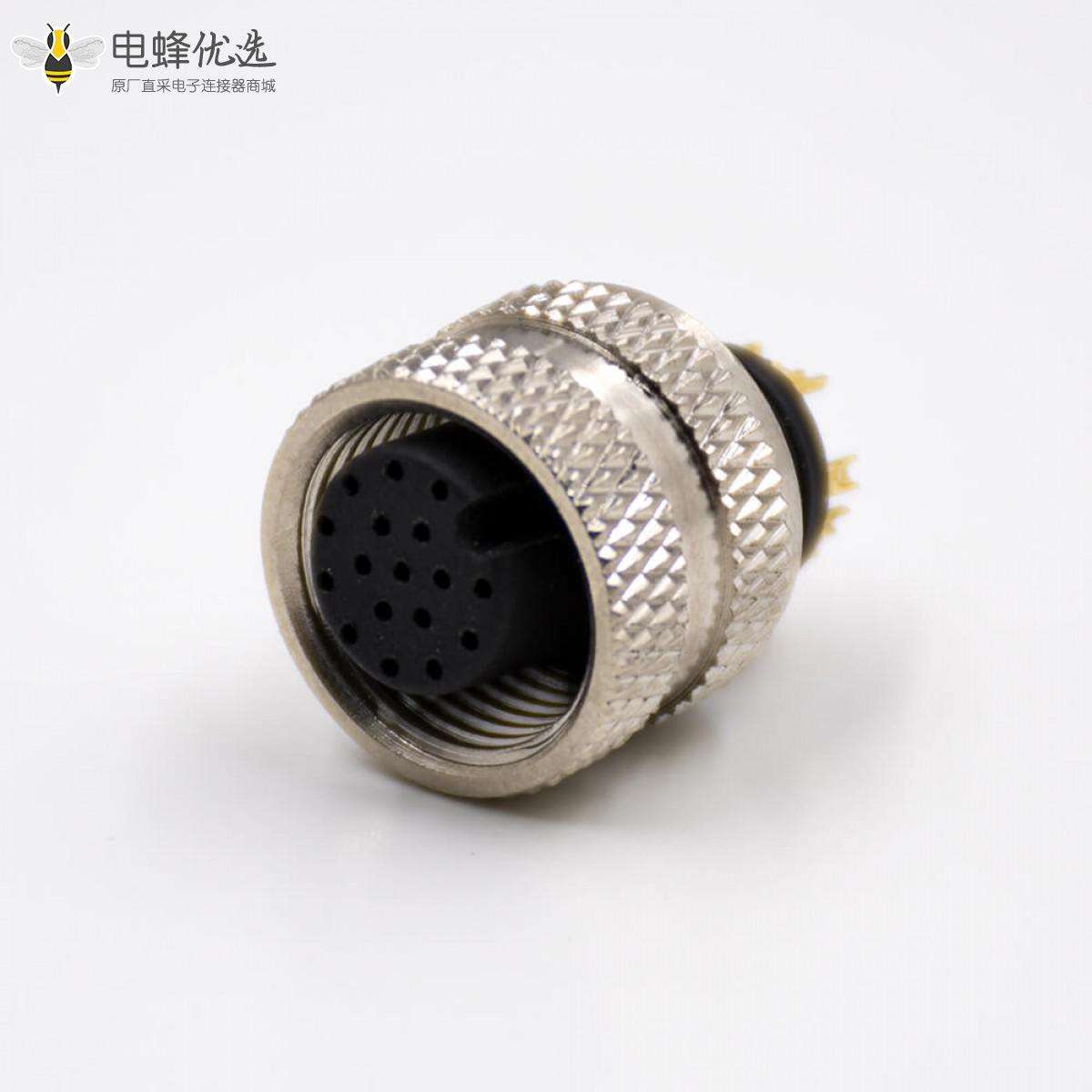 - M12组装接头,A扣,17芯,母头,直式,注塑焊线式,不带屏蔽;