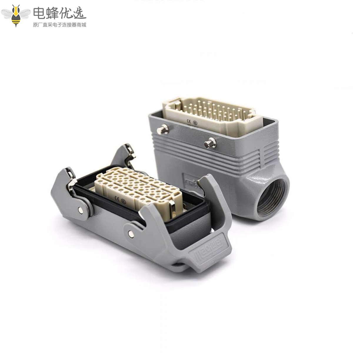 H16B重载连接器,开孔安装,斜出口,塑料铁扣,四耳,双扣,公母对接,40芯,镀银,PG21;